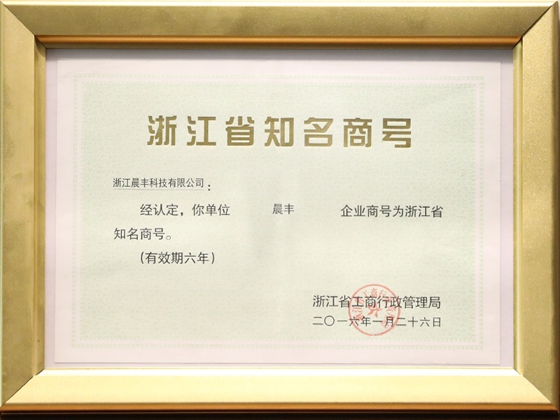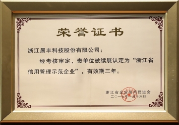 浙江晨豐科技股份有限公司自成立以來,先后榮獲國家高新技術(shù)企業(yè)、浙江省科技型中小型企業(yè)、浙江省著名商標(biāo)、浙江省信用管理示范企業(yè)、浙江省名牌產(chǎn)品、浙江省精細(xì)化管理示范企業(yè)、浙江省知名商號(hào)、浙江省名牌產(chǎn)品等榮譽(yù)和稱號(hào)。